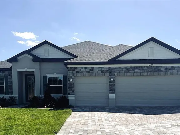 Move in Ready! Just 14 Minutes from Tampa – Graceland Estates! The Sierra home design effortlessly blends casual elegance with spacious functionality. Its charming covered front porch, stone accent exterior accent, and driveway & entry brick pavers create an inviting first impression, complemented by a 6’8” full-lite glass front door. Inside, soaring 9’4” ceilings enhance the sense of openness, while crown molding, quartz countertops, and a tile backsplash elevate the design throughout. Step into a welcoming layout featuring a formal dining room with tray ceiling on one side and a Den with double French doors on the other—perfect for a home office or private retreat. The expansive Great Room flows seamlessly into the kitchen, offering a breakfast nook, stainless appliances including E-star side-by side refrigerator, and a built-in desk area just off the garage, ideal for work or study. Just beyond, a large covered lanai provides the perfect setting for Florida outdoor living, entertaining, or simply relaxing in the sunshine. The owners suite at the back of the home offers a private retreat, complete with multiple closets and a spa-inspired bathroom featuring a tile shower with enclosure and separate soaking tub. Three additional bedrooms with two full bathrooms provide flexible space for family, guests, or hobbies. Additional features include a spacious three-car garage with utility sink, oversized landscaping with irrigation, and architectural shingles, ensuring both beauty and functionality. Smart home conveniences such as a Smart Thermostat and Deako® Smart Switches combine comfort with energy efficiency, and the home comes with a full builder warranty for peace of mind. With thoughtful design and high-end upgrades throughout, the Sierra offers a harmonious blend of style, comfort, and practicality, making it the ideal home for modern Florida living. Don’t miss this opportunity—schedule your private tour today and experience the extraordinary everyday living this home provides.
