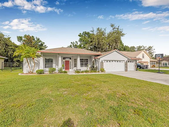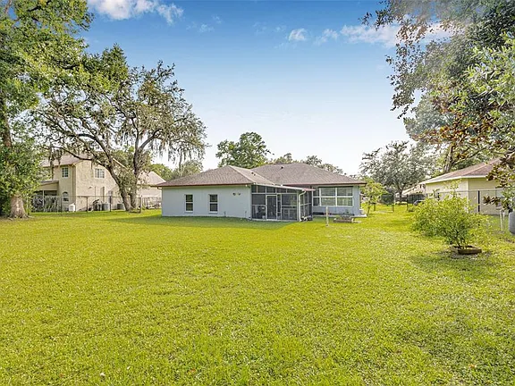 Seller Motived Bring offers! Lease to own opportunity! At less than $230 a square foot this is the best price for a home this size for miles around. This is a big home and a big lot, with plenty of room to add a pool AND NO HOA or CDD! Updated 4 Bed | 3 Bath | 3-car garage home with many high end features. For peace of mind the roof and HVAC were replaced in 2020, and the septic tank was replaced in 2022. Nestled on a private and peaceful half-acre lot, no HOA, no CDD with plenty of room to add a pool, garden or whatever your heart desires. Thoughtfully updated this home offers the perfect blend of luxury, functionality, and charm, all set against a backdrop of lush tropical landscaping and mature fruit trees. As you enter, you’re immediately greeted by soaring 12-foot ceilings, a bright open floor plan, and elegant finishes throughout. The home features both a formal living room and a family room, providing ample space for entertaining or relaxing. A cozy fireplace creates a warm focal point in the main living area, while ceiling fans and light dimmers throughout the home ensure comfort and ambiance in every room. The heart of the home is the stunning, fully updated kitchen, the waterfall granite countertops make a striking statement, paired beautifully with crisp white cabinetry, a designer tile backsplash, stainless steel appliances and a pantry with custom wood shelving make this kitchen as practical as it is beautiful—ideal for cooking, hosting, or everyday living. A versatile flex room offers even more space to suit your needs, whether for a home office, gym, playroom, or guest space. The luxurious primary suite is a private retreat features a spacious bedroom, a large walk-in closet with custom shelving and organizers, and a truly spa-like bathroom. Enjoy a frameless glass and tile shower extending to the ceiling, a double vanity, a heated towel rack, and a separate water closet complete with a bidet. Every element was designed with comfort and relaxation in mind. The two additional bathrooms are equally impressive, including black fixtures and stylish smart mirrors, perfect for added convenience and tech-savvy functionality. A dedicated indoor laundry room makes household tasks easy, and a mud sink located outside adds convenience for outdoor cleanup or gardening tasks. Outside, the half-acre lot feels like your own private orchard. You’ll find mango, lychee, guava, lemon, avocado, navel orange trees, and even grape vines—perfect for fresh picking and enjoying the bounty of your backyard. This is more than just a house—it’s a thoughtfully crafted home where no detail has been overlooked. With high-end finishes, flexible living spaces, and an outdoor oasis, this property offers the perfect combination of luxury and lifestyle. Don’t miss the opportunity to make it yours!