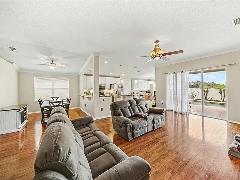 Open-concept home with hardwood floors and flexible office/den/bedroom space. Enjoy a saltwater pool with brand-new pump and heater (2019). Major updates include HVAC (2018) and a new roof (2025). Bright, spacious layout ideal for everyday living and entertaining.