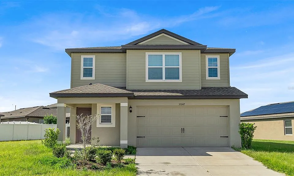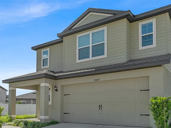 Welcome to this beautifully designed two-story home in the desirable community of Trilby Crossing. Built in 2021, this 4-bedroom, 2.5-bath residence offers 1,823 sq ft of living space with a perfect blend of style, comfort, and functionality. The open-concept layout features a spacious living and dining area that flows seamlessly into a modern kitchen complete with granite countertops, 36” upper cabinets with crown molding, and energy-efficient Whirlpool® appliances. Upstairs, you’ll find generously sized bedrooms, including a private owner’s suite with a large walk-in closet and dual-sink vanity. Enjoy relaxing or entertaining outdoors with a covered back patio and lush green yard. Additional highlights include a two-car garage, smart home features. Trilby Crossing offers a family-friendly lifestyle with community amenities such as a playground, sports fields, pavilion, and even a fenced-in dog park. Conveniently located near US-301, I-75, and local shopping, this home combines modern living with a peaceful suburban setting. Move-in ready and waiting for its new owner!