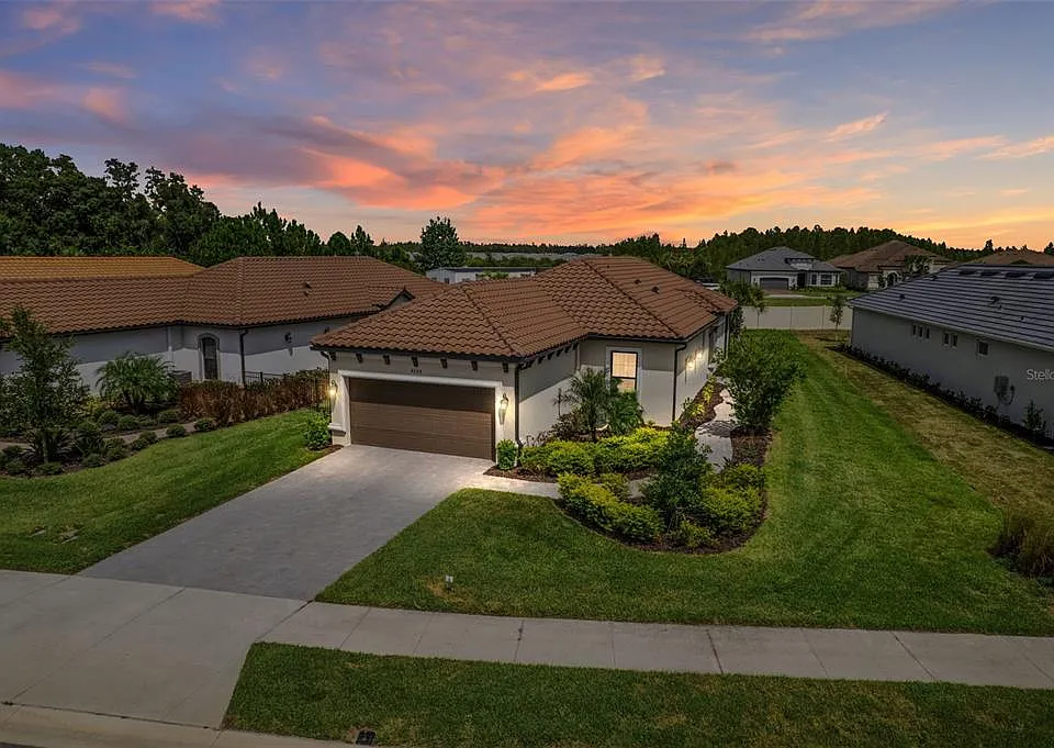 Welcome to 4308 Cairoli Court in Esplanade at Wiregrass Ranch – a premier 55+ maintenance-free community in Wesley Chapel. This impeccably maintained residence offers a blend of elegance and comfort with thoughtfully chosen upgrades throughout. Step inside and immediately notice the open, light-filled layout accented by tray ceilings in the den and other living areas, creating a sense of spacious sophistication. Highlights include: No carpet – ceramic tile flooring runs seamlessly throughout the home for a clean, modern look. Freshly painted light gray walls that provide a neutral backdrop for any style. 8-foot interior doors installed by the builder for an elevated design. Matching ceiling fans in every room for style and comfort. French doors for a touch of charm and character. The gourmet kitchen and living spaces flow effortlessly to the screened rear patio, perfect for indoor-outdoor living. Custom blinds add privacy and elegance, while the upgraded LG counter-depth refrigerator, plus LG washer and dryer, bring both efficiency and style. Retreat to the bathrooms featuring special designer tiles and frameless glass shower doors, while custom closets add organization and function. Additional upgrades include: Epoxy-coated garage floors for durability and easy care. Alarm system (installed and monitored) for peace of mind. This home truly shines with its meticulous condition and attention to detail, offering maintenance-free living in one of Wesley Chapel’s most desirable 55+ communities.