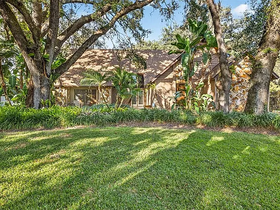In a setting amongst the beautiful oaks of Temple Terrace , with the Hillsborough River and the Temple Terrace Golf and Country Club in close proximity, this home defines luxury. Walking into this home you immediately notice the 30 ft ceilings with wood tongue and groove craftsmanship. The open floor plan with the living room and dining room combo overlook a beautiful pool area with lots of space for entertaining. The master bedroom is a true retreat, complete with walk-in closets and an updated master bathroom featuring a stand-up shower and a luxurious jacuzzi tub. An additional oversized bedroom on the ground level opens up to one of the three outdoor entertaining spaces through sliding doors, providing a perfect blend of indoor and outdoor living. The open floor plan is designed to impress, highlighted With an updated kitchen sure to please any chef, the kitchen features an eat-in breakfast nook and bar seating. This phenomenal home also includes two fireplaces, perfect for cozy evenings. Step outside to the screened-in outdoor area where you’ll find a heated, saltwater pool with a beach shelf and a waterfall spa, making it an ideal spot for relaxation and entertainment. With three separate outdoor entertaining areas, a fully fenced yard, and tons of storage, this home is perfect for both quiet family time and lively gatherings. Upstairs, an incredible loft overlooks the pool and living space, leading to two more generously sized bedrooms, each with its own loft area. Additional features include a new roof installed in 2023, a reverse osmosis system, water softener, an updated master bathroom with a spa tub, a Bluetooth intercom stereo system throughout the home, and ample storage space. The oversized 2.5 car garage has plenty of space for two cars plus a golf cart. Temple Terrace allows golf carts to be driven on the street one of the few communities that allow this. Within walking distance is the Temple Terrace family Recreation complex one of the nicest in Tampa featuring activities for youth up to elder adults. Located just minutes from USF, Busch Gardens, I-75, I-4, hospitals, Ybor City, and Downtown Tampa, this home offers convenience and accessibility to some of the best attractions and amenities in the area. Schedule a private showing today and experience the perfect blend of luxury, comfort, and convenience!