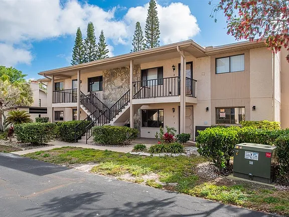 Great location! Come see this spacious and cozy Condo in the 55+ community of Eagles Point with Gulf Access. This two-bedroom, two-bathroom unit has an open floor plan and boasts a beautiful floor-to-ceiling stone, wood-burning fireplace in the living room. The kitchen offers generous counter space, has an abundance of cabinets, large closet pantry and breakfast bar/pass-through adjoining the dining room which makes serving a breeze and ensures you will never miss out on your favorite TV show or party conversations. Huge primary suite and guest bedroom, both large enough to accommodate a king-size bed and much more. Right off the living room you will enjoy the large, enclosed lanai all year round. The community includes a Heated swimming pool, clubhouse, billiards, private exercise room, boat dock, kayak storage, and more. The monthly HOA fee includes water, sewer, basic cable, trash, flood insurance, roof and outside maintenance. Unlike many of today’s complexes, Eagles Point allows a new owner to rent immediately after purchasing. Not yet ready to retire and move to Florida? Eagle’s Point would make a great investment. Schedule your appointment today!